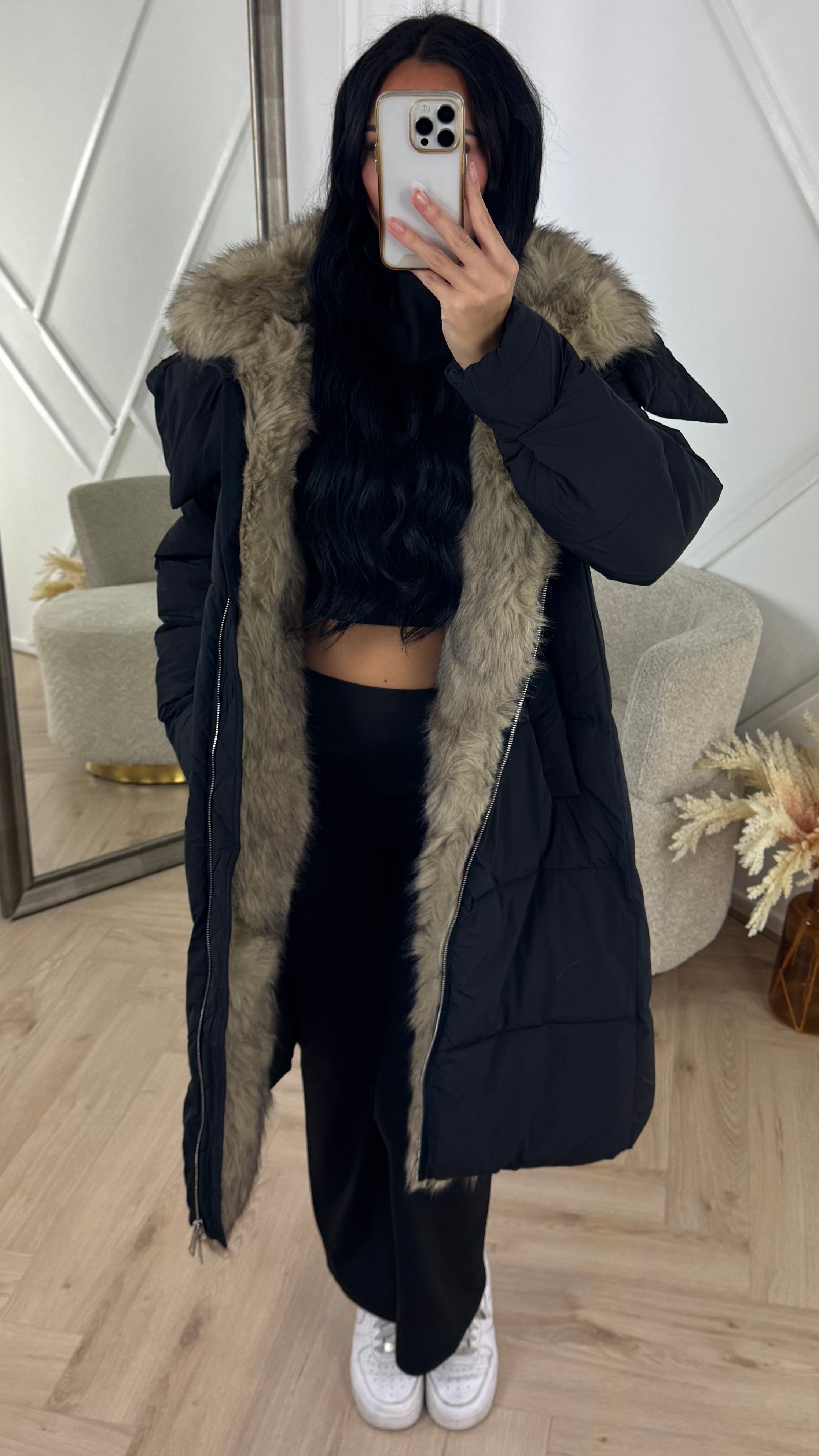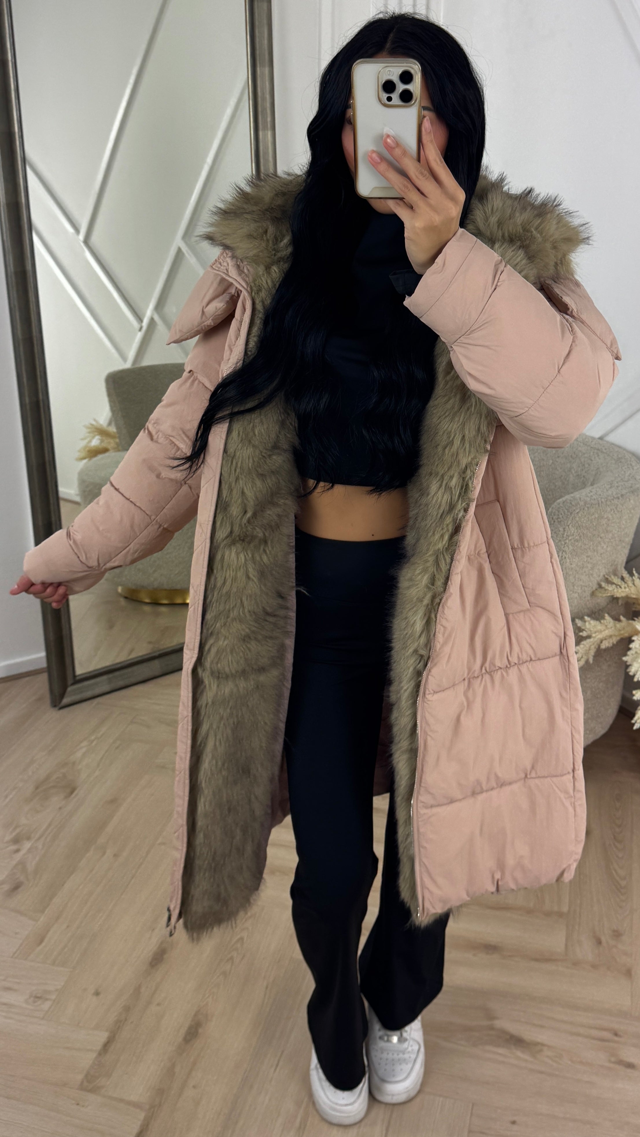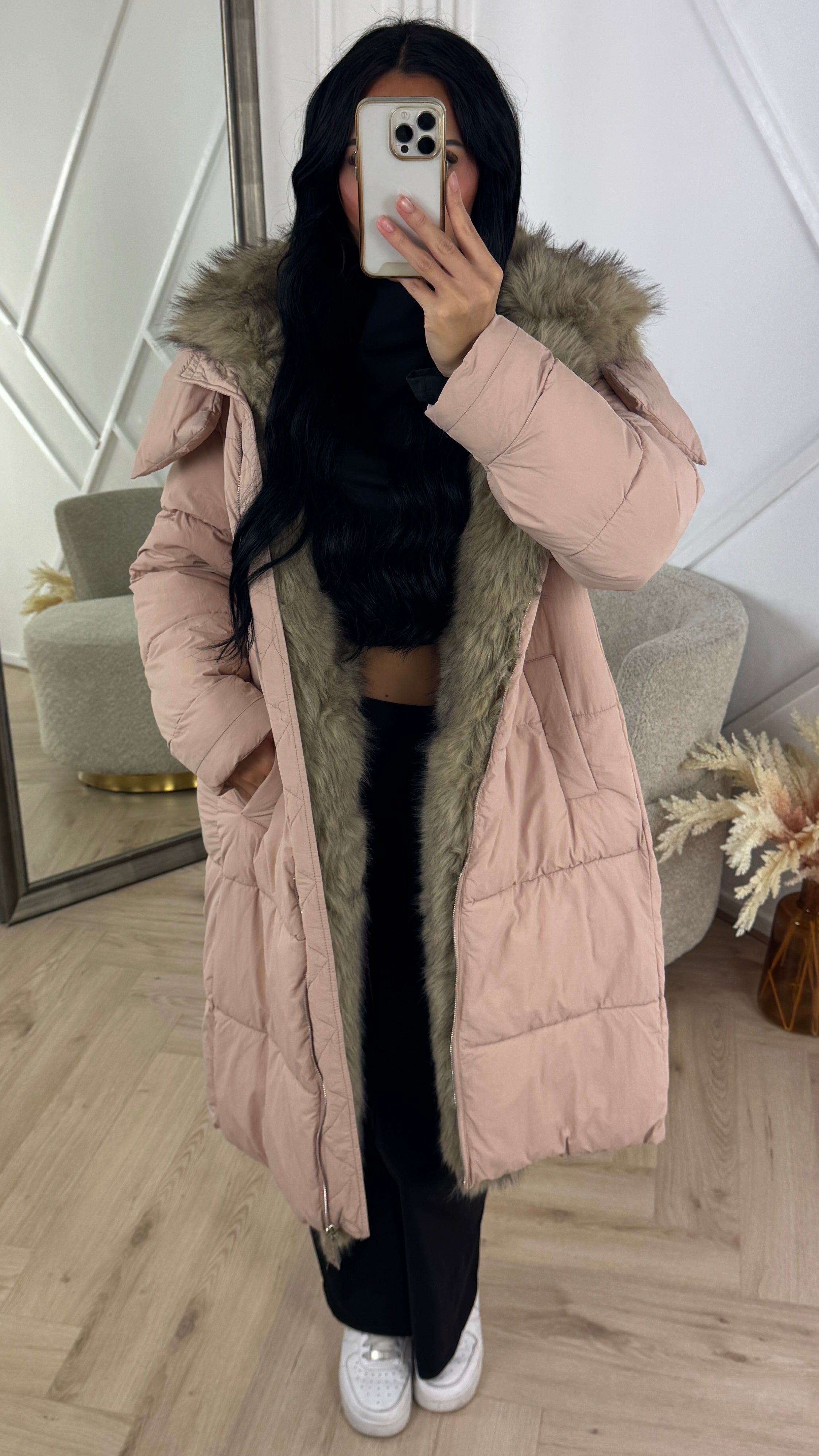 Lange Puffer Jas met Afneembare Faux Fur Capuchon