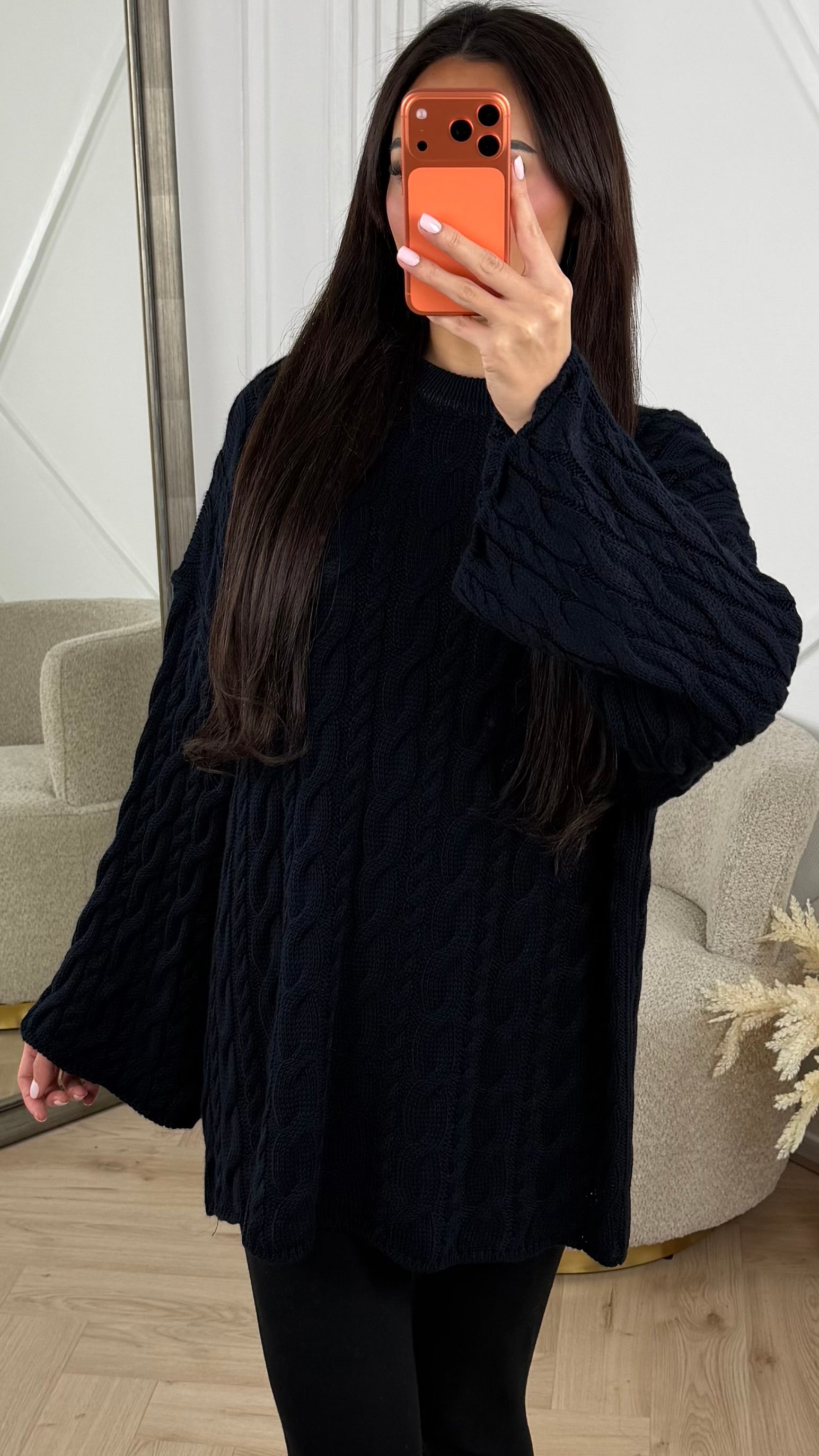 Oversized Cable Knit Trui met Wijdvallende Mouwen