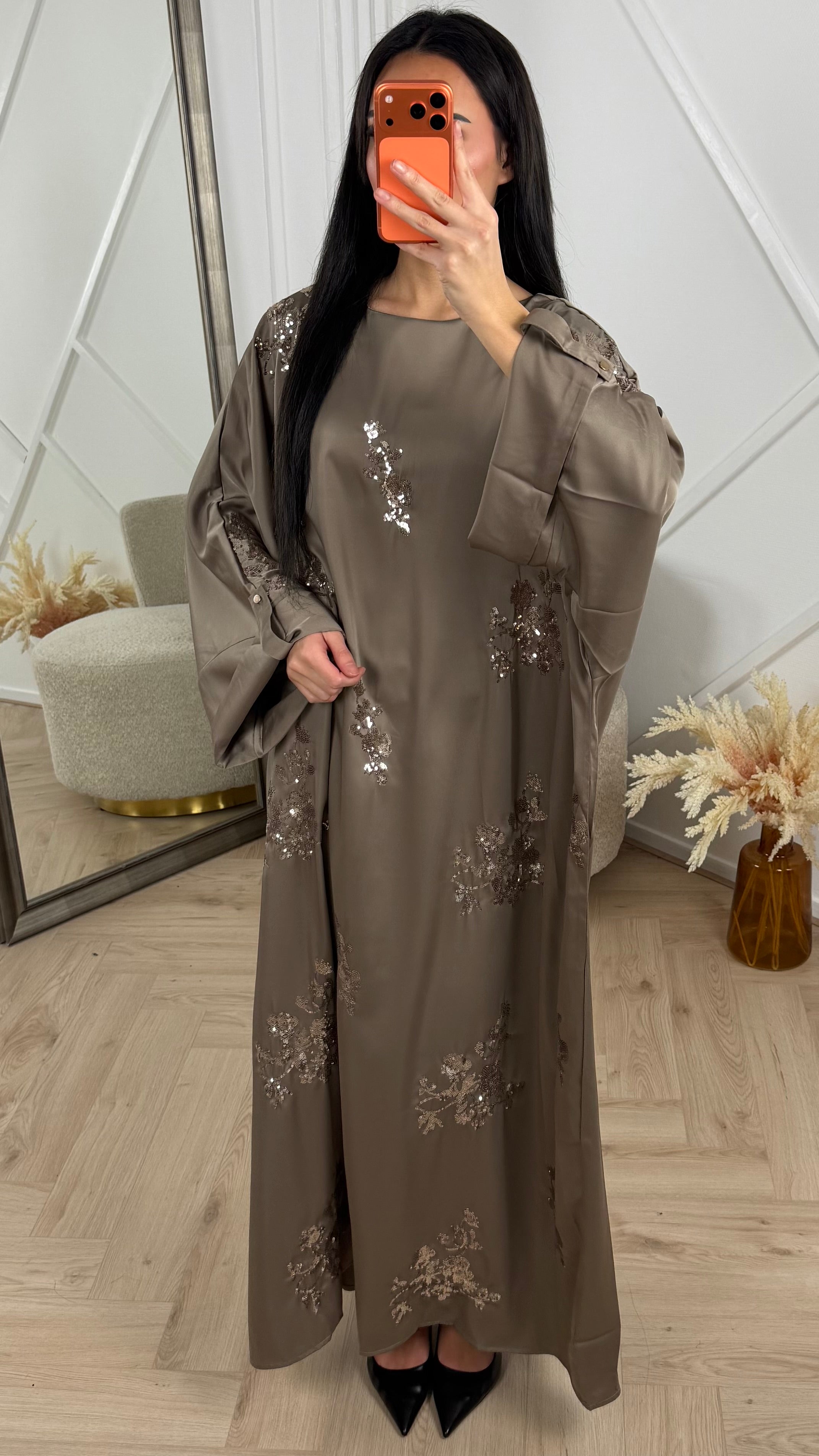 Satijnen Abaya Maxi Jurk met Pailletten Bloemen