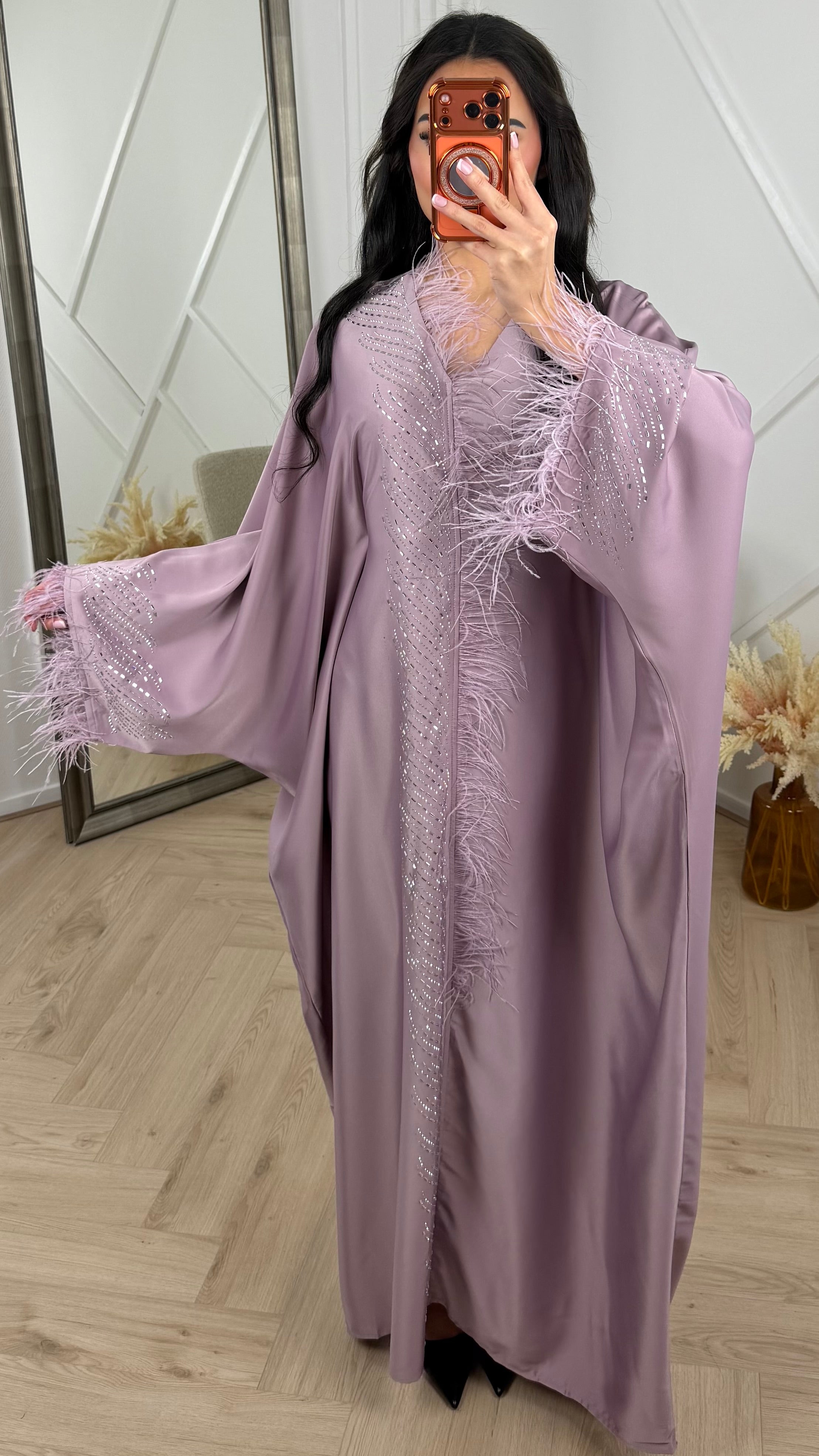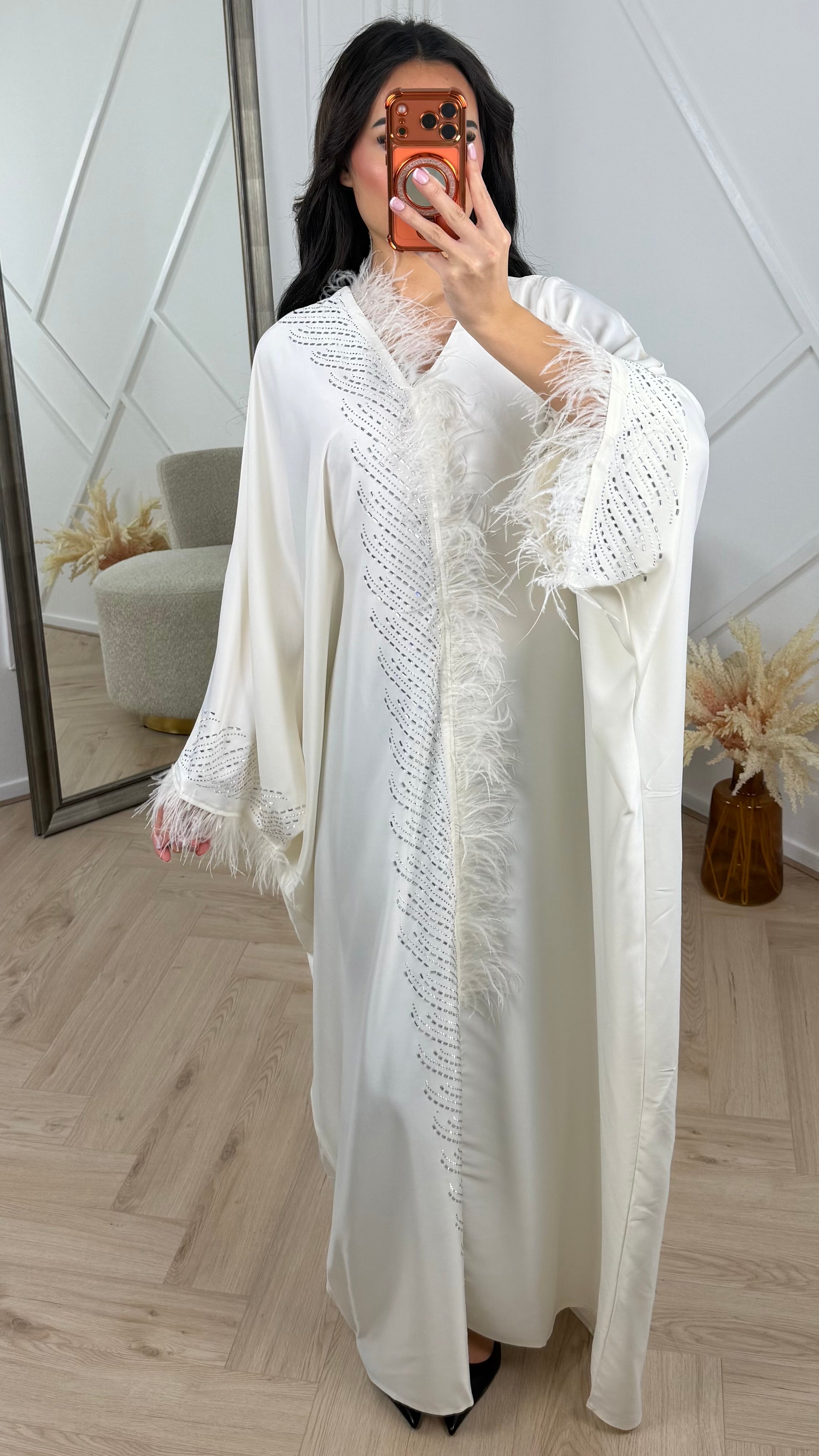 🔖 Satijnen Abaya Maxi Jurk met Veren & Strass Details