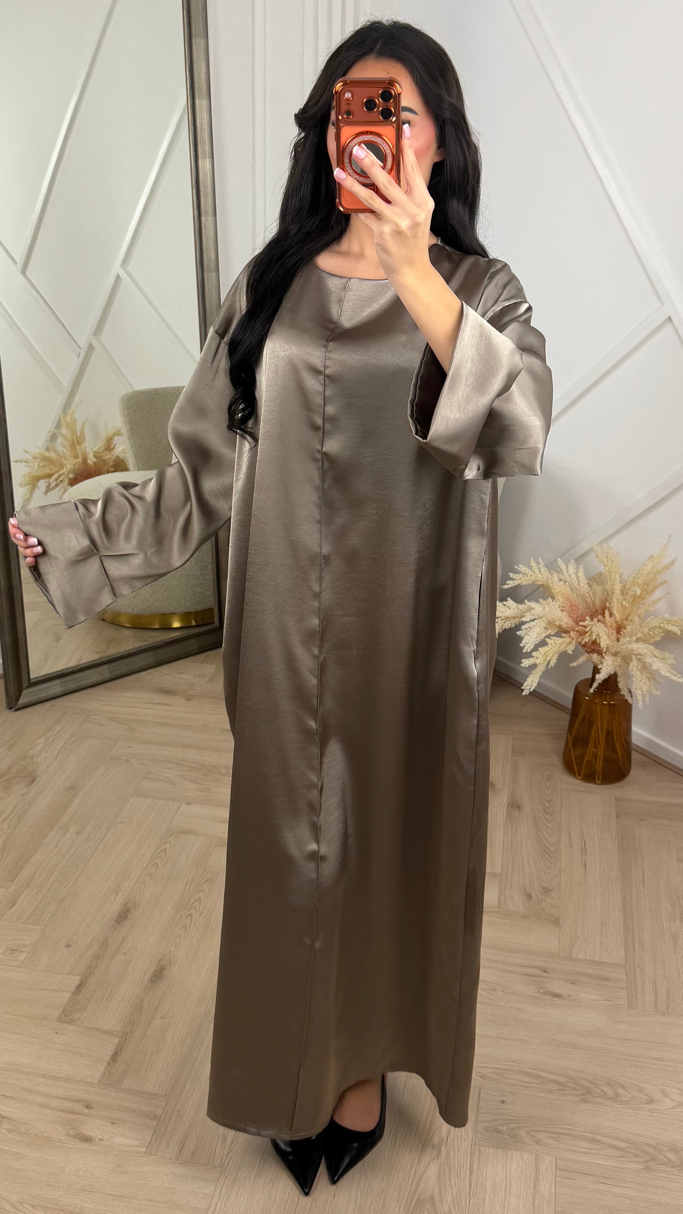 Satijnen Abaya Maxi Jurk met Wijde Mouwen