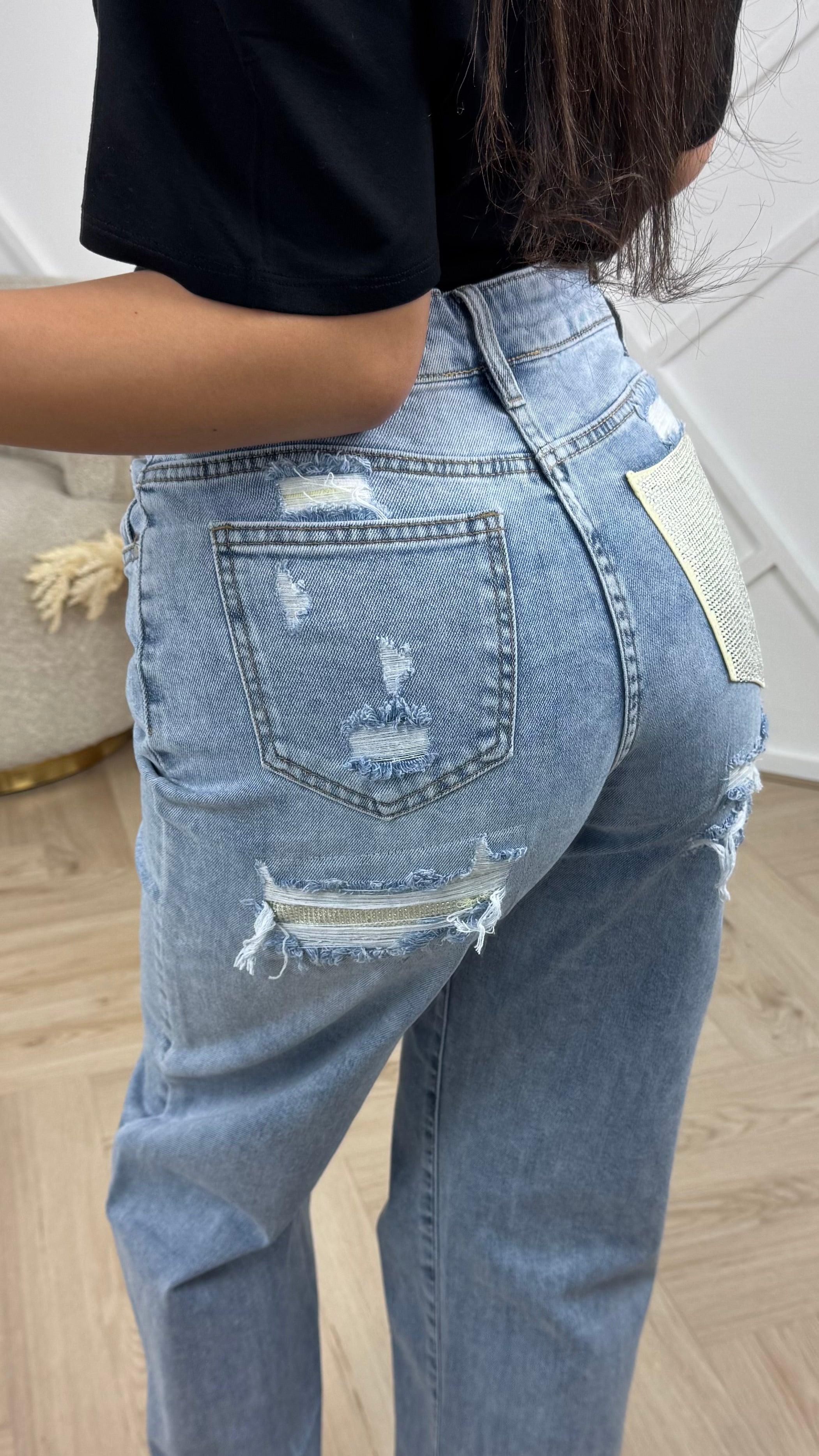 Straight Leg Jeans met Destroyed Details en Statement Achterzak HM1576 – Mukistore.com Ga naar inhoud