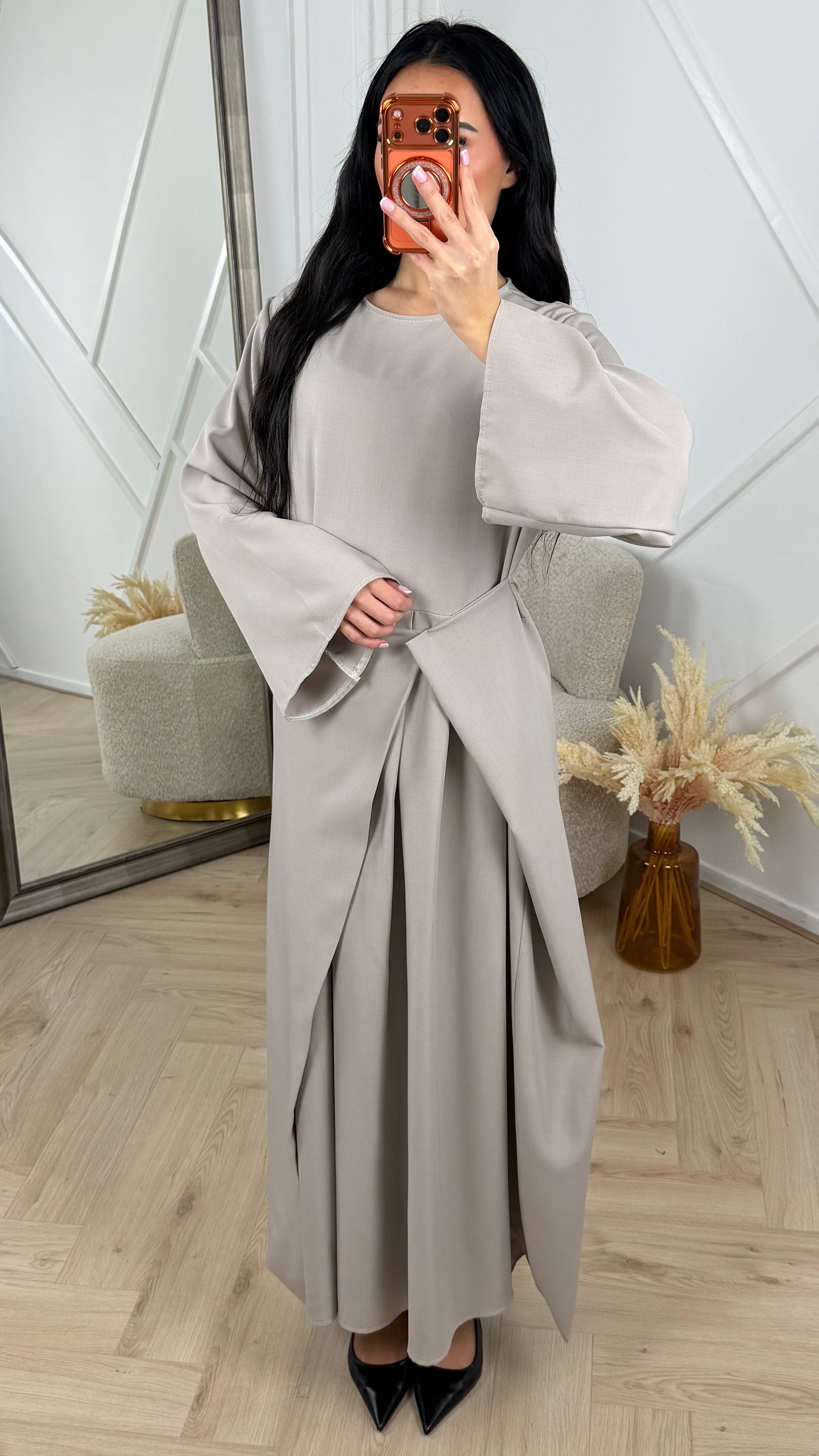 • Elegante abaya maxi jurk met overslagdetail aan de voorzijde