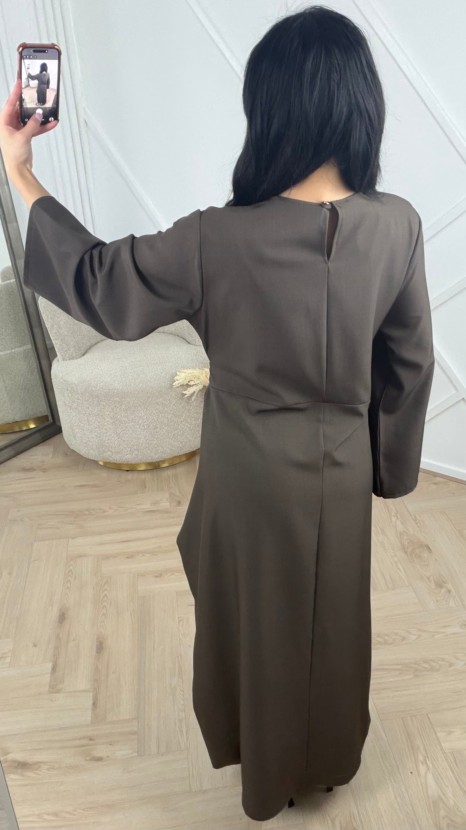 Abaya Maxi Jurk met Overslagdetail en Gouden Broche – Mukistore.com Ga naar inhoud