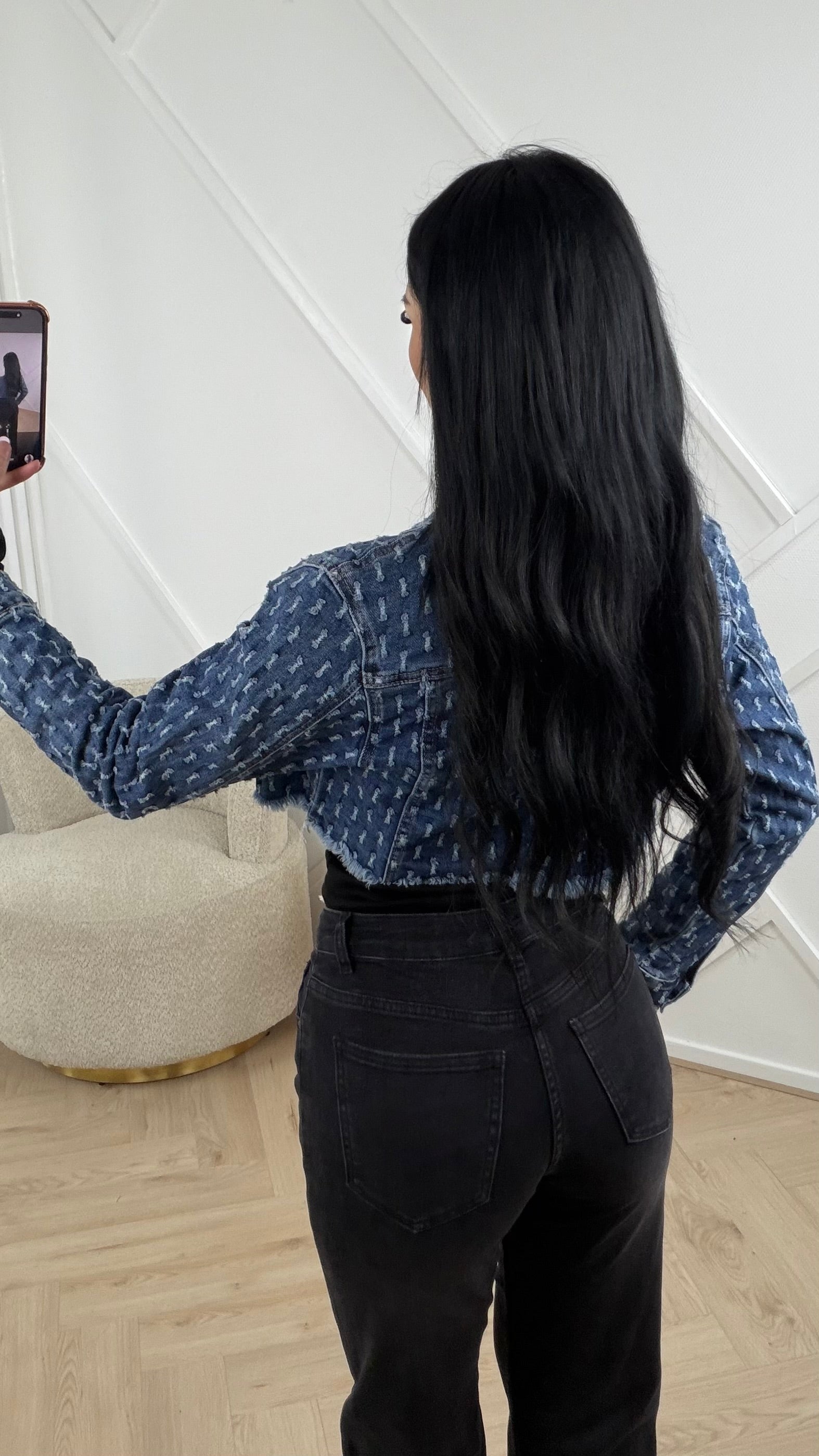Cropped Denim Jasje met Structuurdessin – H637-10