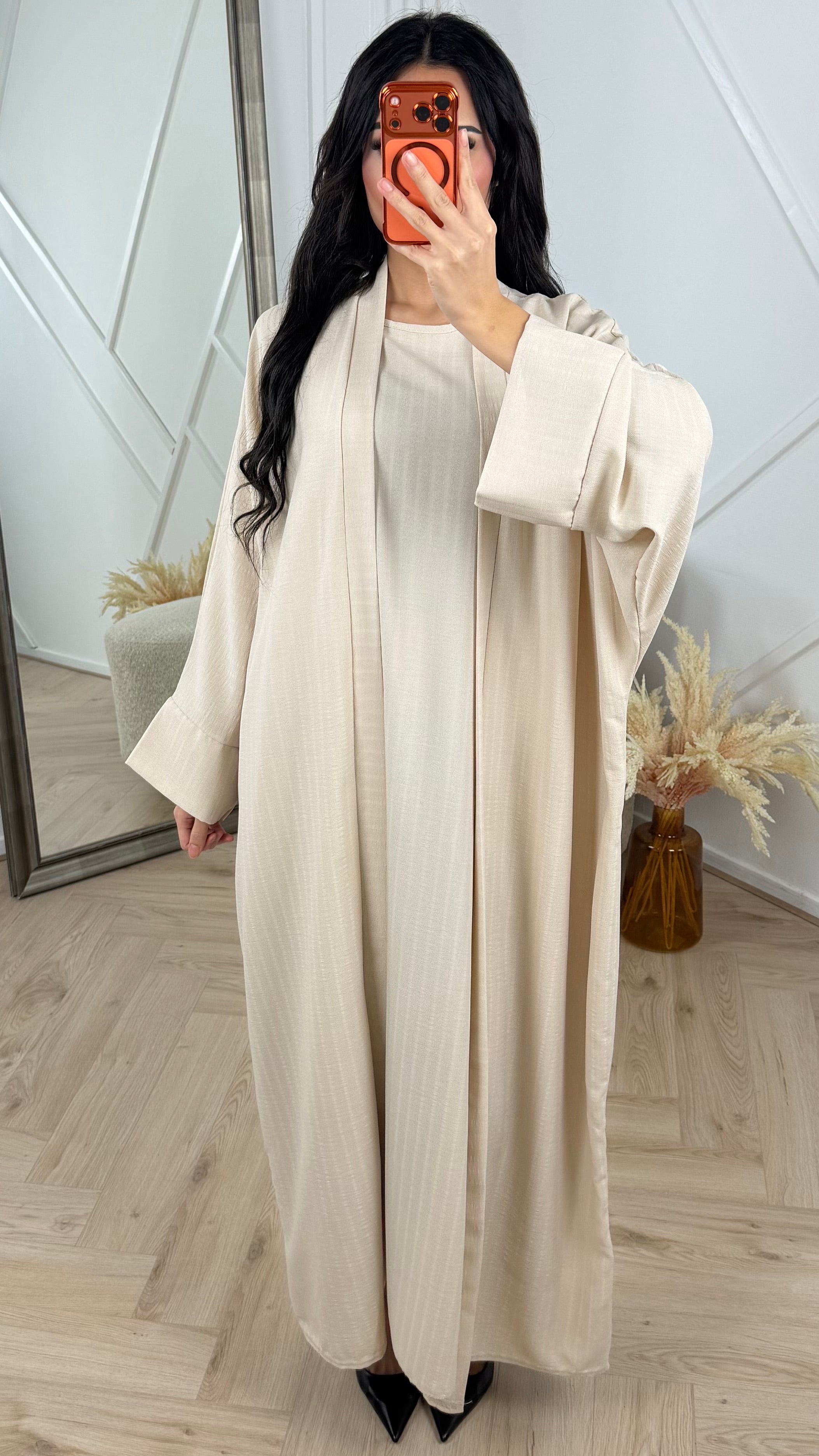 Linnenlook 2-Piece Abaya Set met Binnenjurk