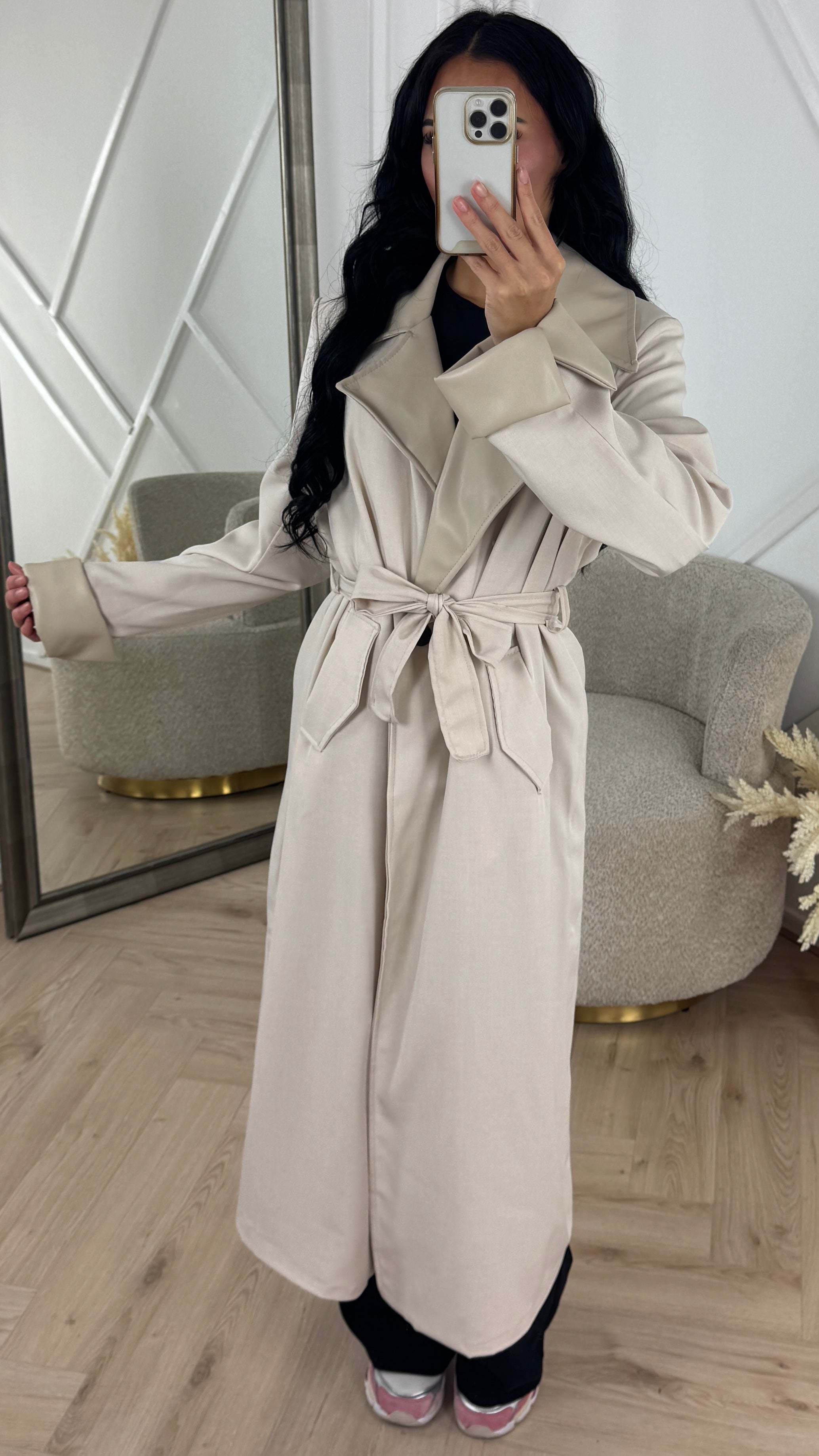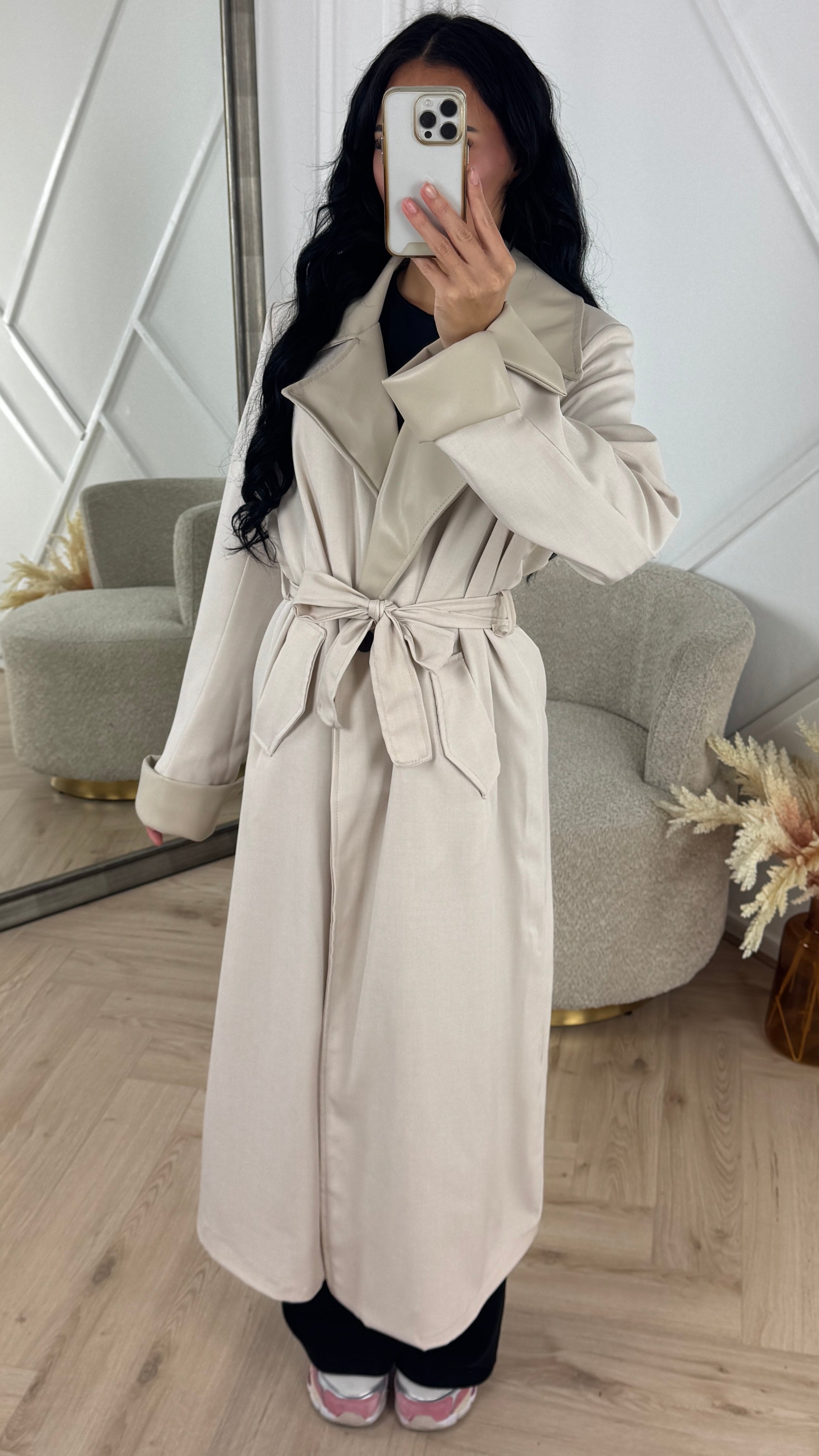 Luxe Trenchcoat met Leren Revers & Ceintuur