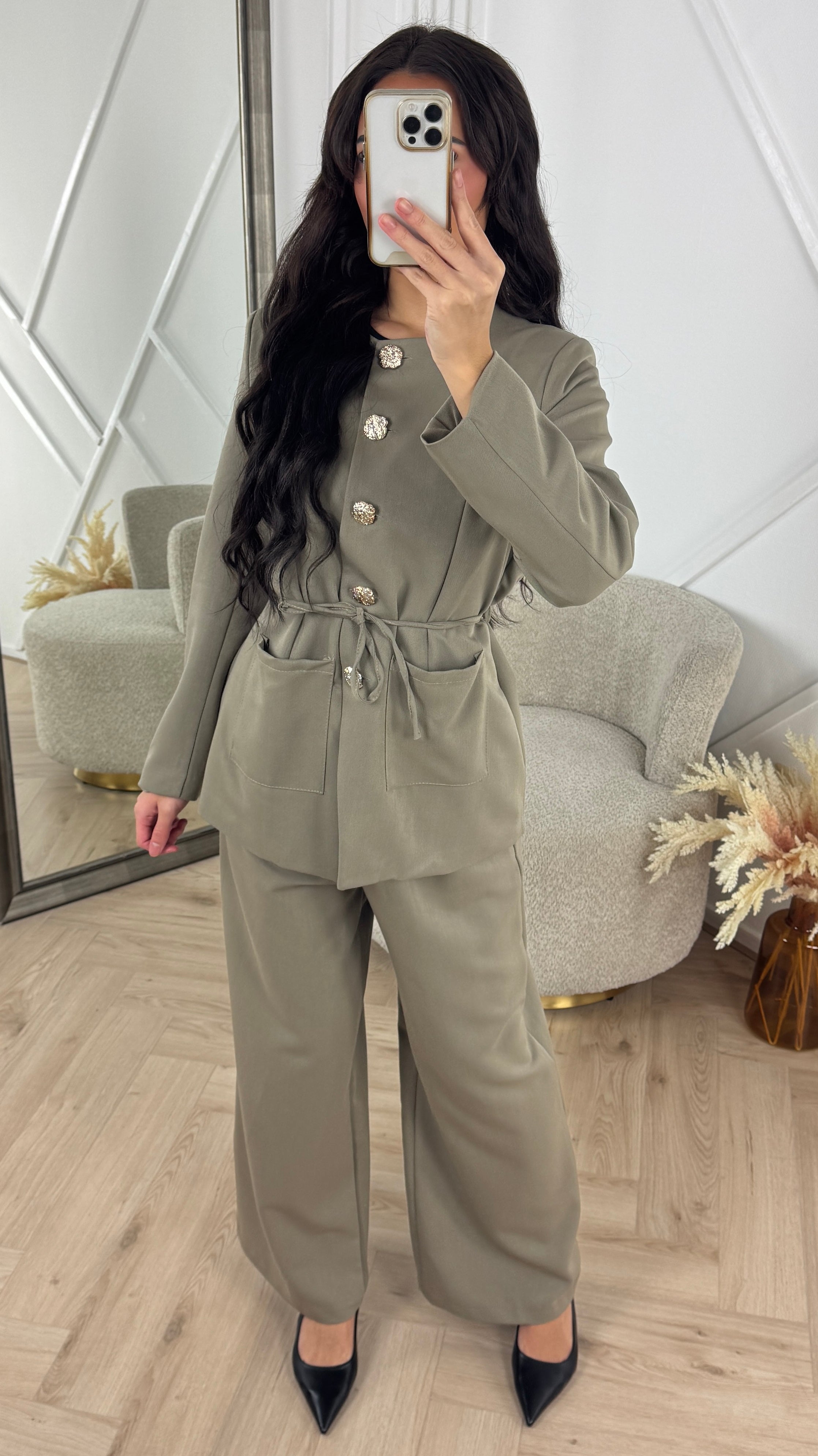 🔖 Luxe Two-Piece Set met Gouden Knopen & Ceintuur