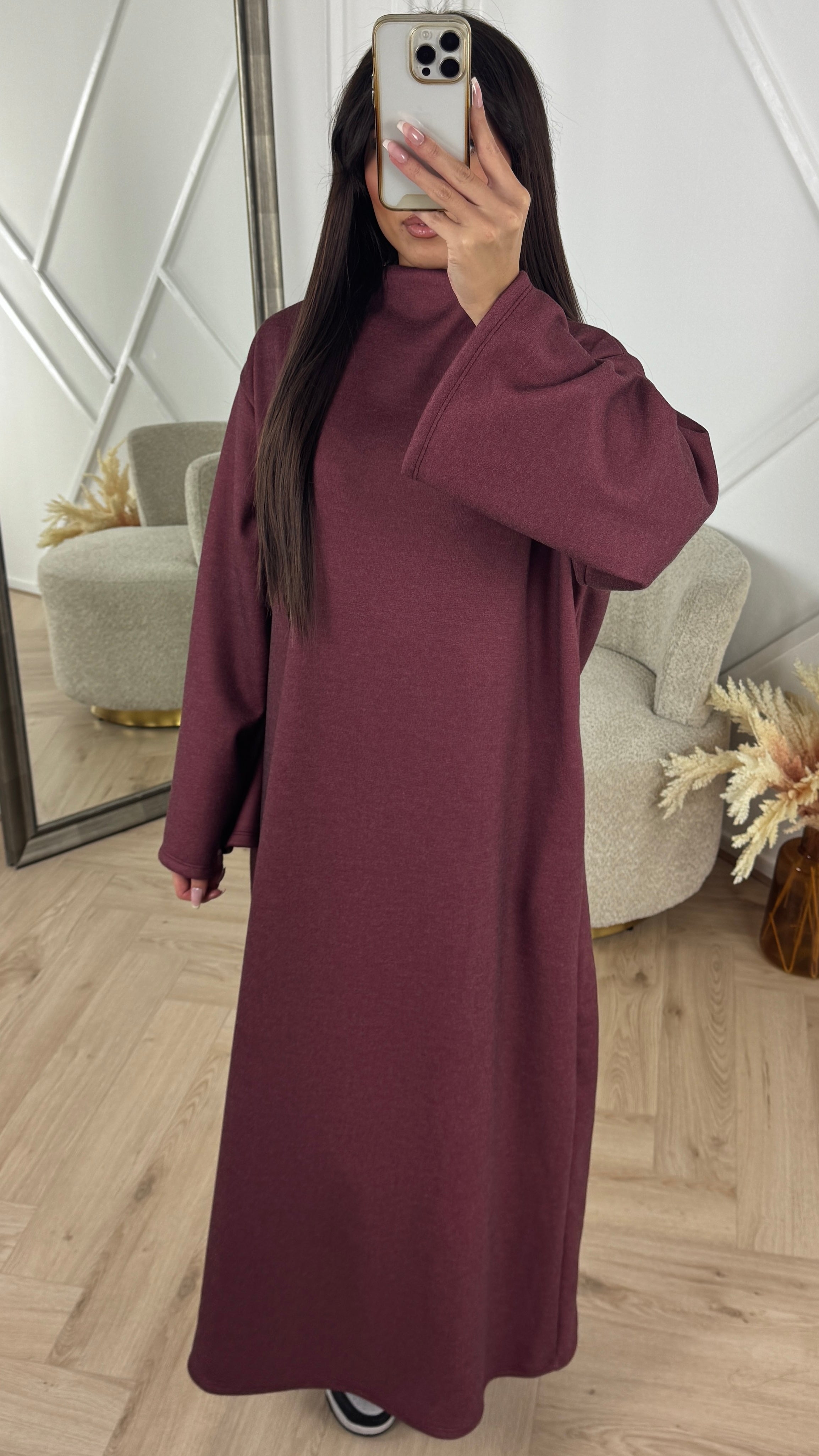 Minimal Fleece Maxi Jurk met Wijde Mouwen