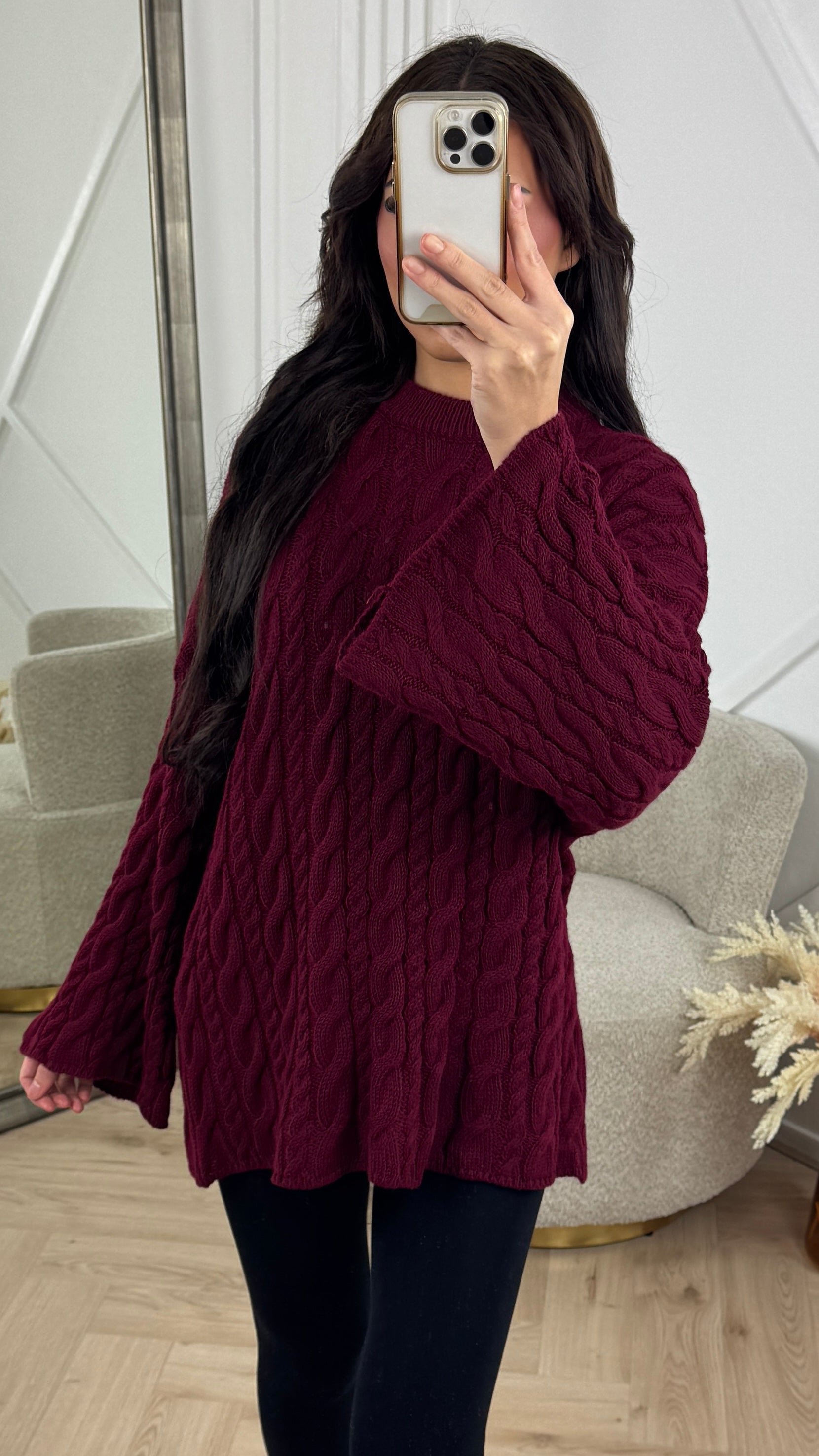 🔖 Oversized Cable Knit Trui met Wijdvallende Mouwen