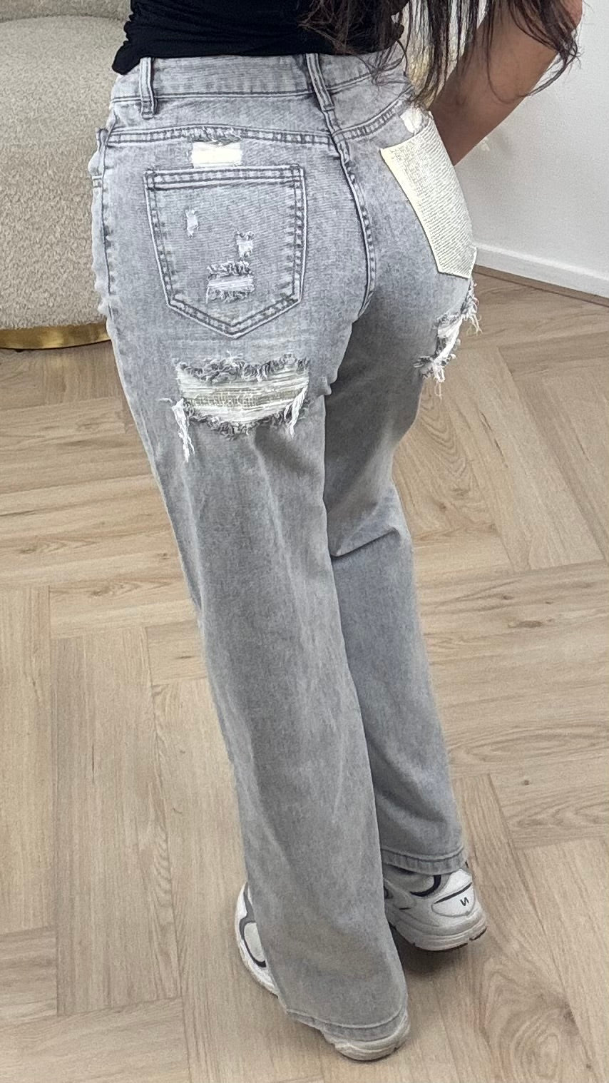 Straight Leg Jeans met Destroyed Details en Statement Achterzak HM1576-6